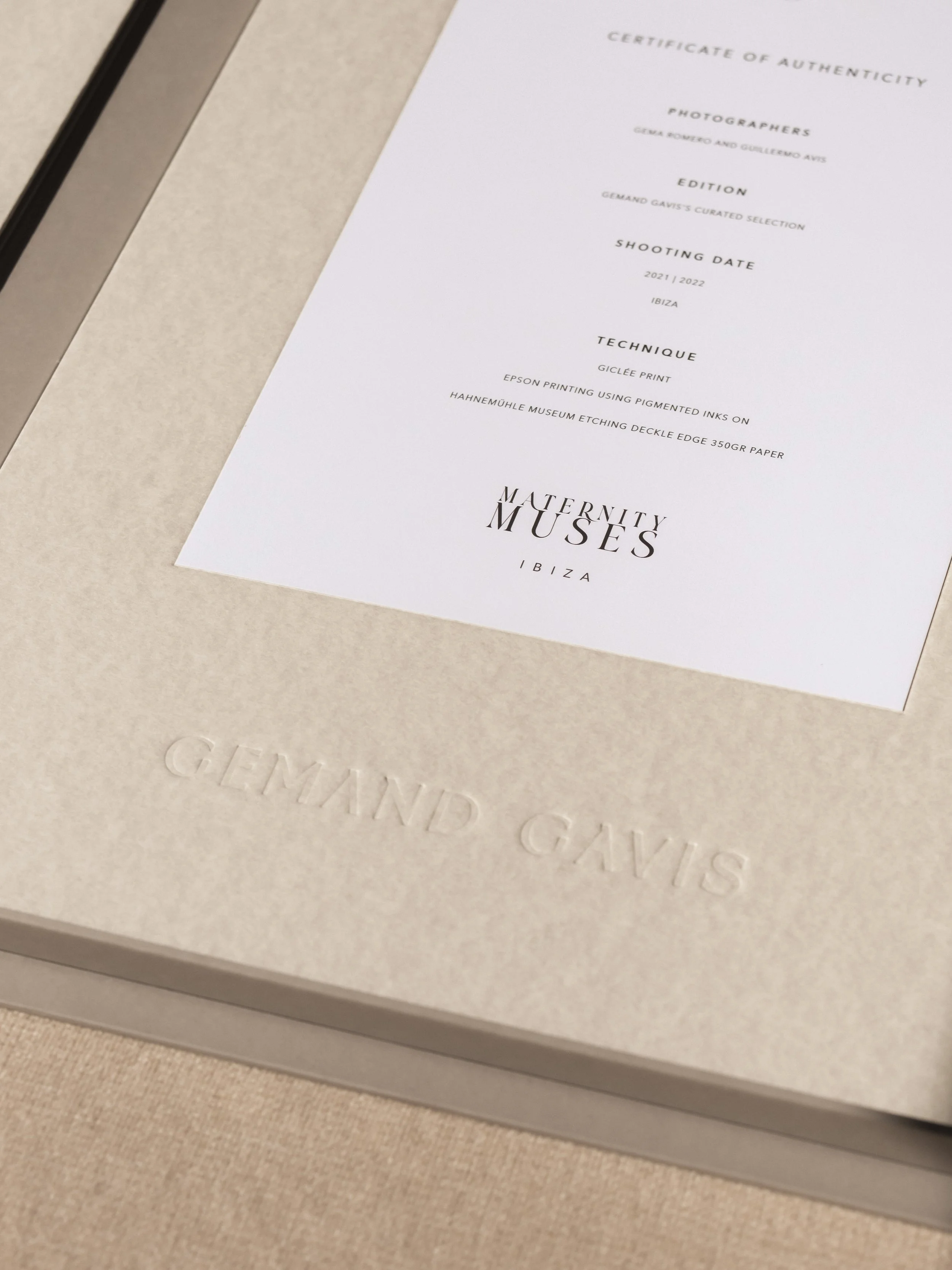 The artworks are printed in our laboratory by expert hands using the giclée technique on Hahnemühle Museum Etching Deckle Edge 350 gsm paper.
