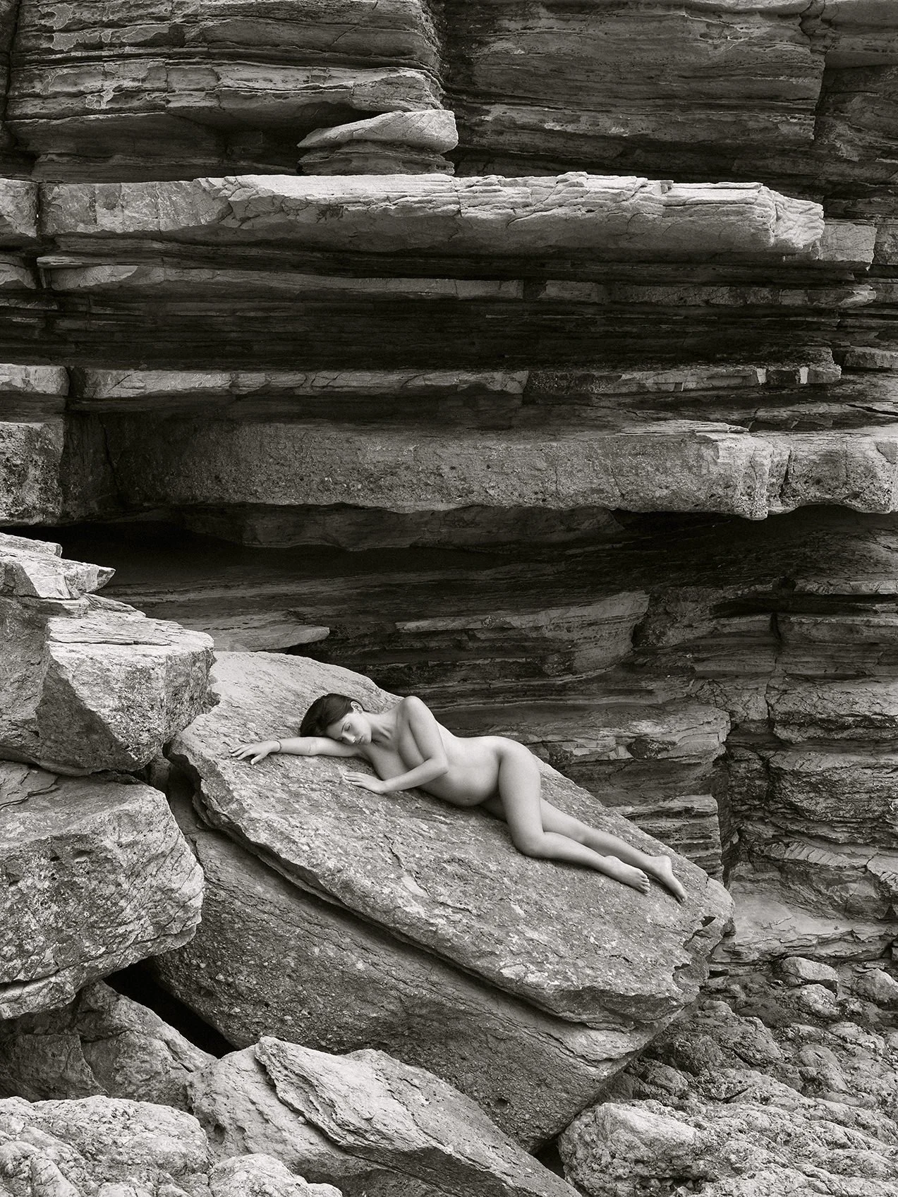The wild landscape gently cradles each naked figure like a feather that rushes through the air and then poses itself unexpectedly.